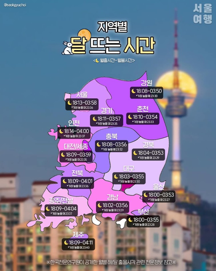 3. 🌕 소원 빌기 준비! 지역별 달 뜨는 시간 확인