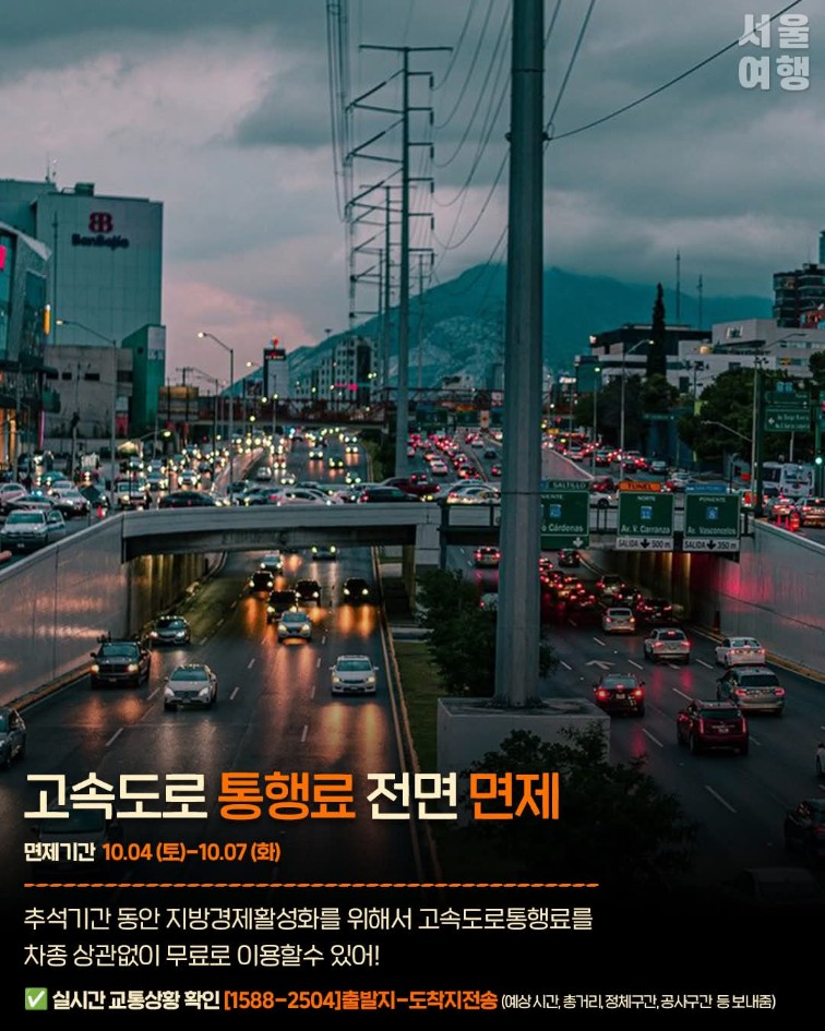 1. 💸 귀성길 & 귀경길 부담 제로! 고속도로 통행료 전면 면제
