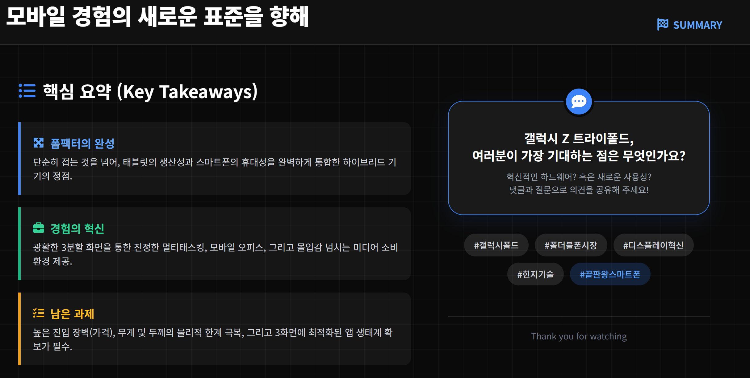 갤럭시 Z 트라이폴드는 단순한 스마트폰의 진화를 넘어, '내 손안의 대화면 PC' 시대를 여는 혁명적인 도구가 될 것입니다.