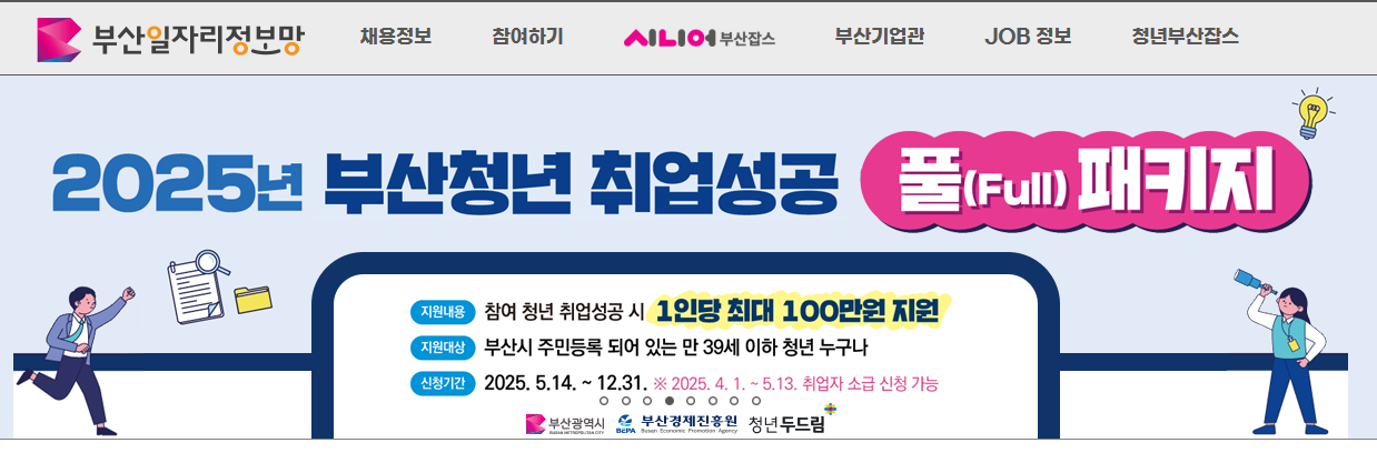 - **부산청년 취업성공 풀(Full) 패키지:** 부산 중소·중견기업에 정규직으로 취업 후 1년 이상 근속 시 **최대 100만 원**을 지원하는 정책으로, 청년들의 장기 근속을 유도합니다.