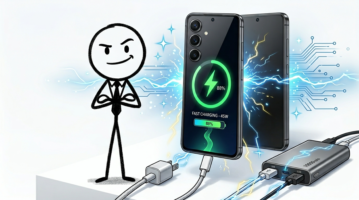 Tip: 최적의 속도를 위해서는 삼성 공식 인증을 받은 PD 3.0(PPS) 규격의 충전기와 고전류를 지원하는 전용 케이블을 사용해야 성능 저하를 막을 수 있습니다.