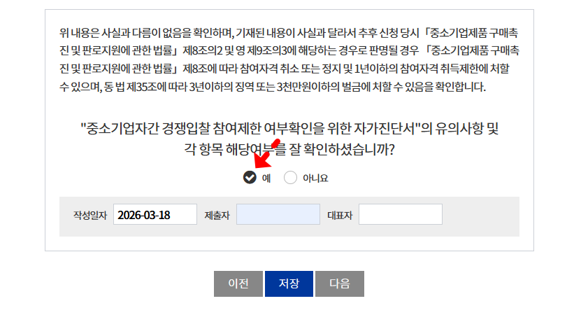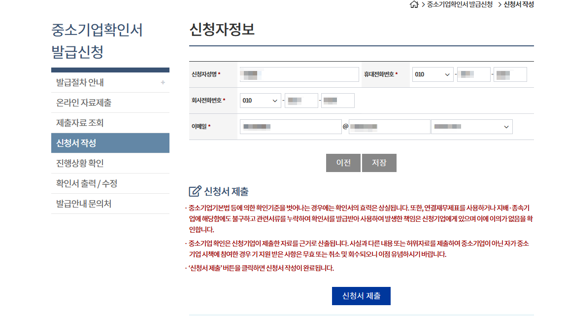 | 02. 신청서 작성 | 기업 정보 확인 | 업종, 주소 등 기본 사항 및 매출 규모 입력 |