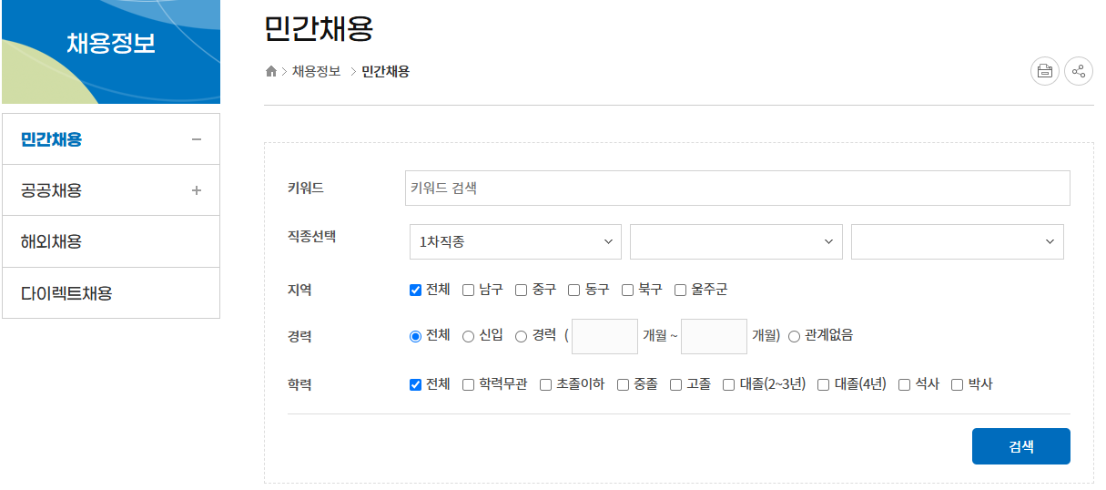 - 울산고용복지+센터(워크넷 관할 채용검색) : 워크넷 울산 관할 페이지에서 지역 채용검색 가능.