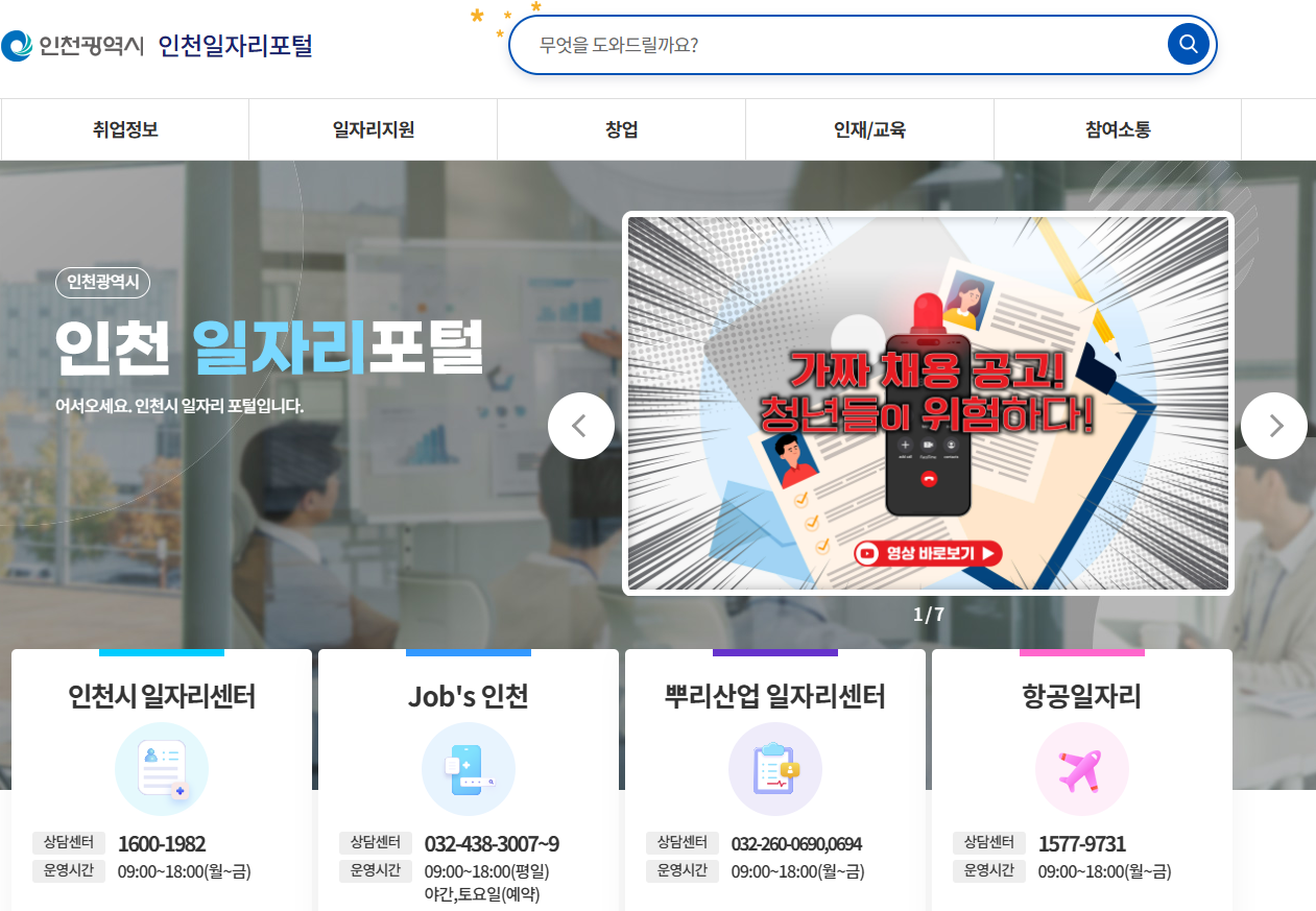 - **상담 지원:** 취업 관련 종합적인 상담은 인천시일자리센터(1600-1982) 및 군·구 일자리센터를 통해 받을 수 있습니다.
