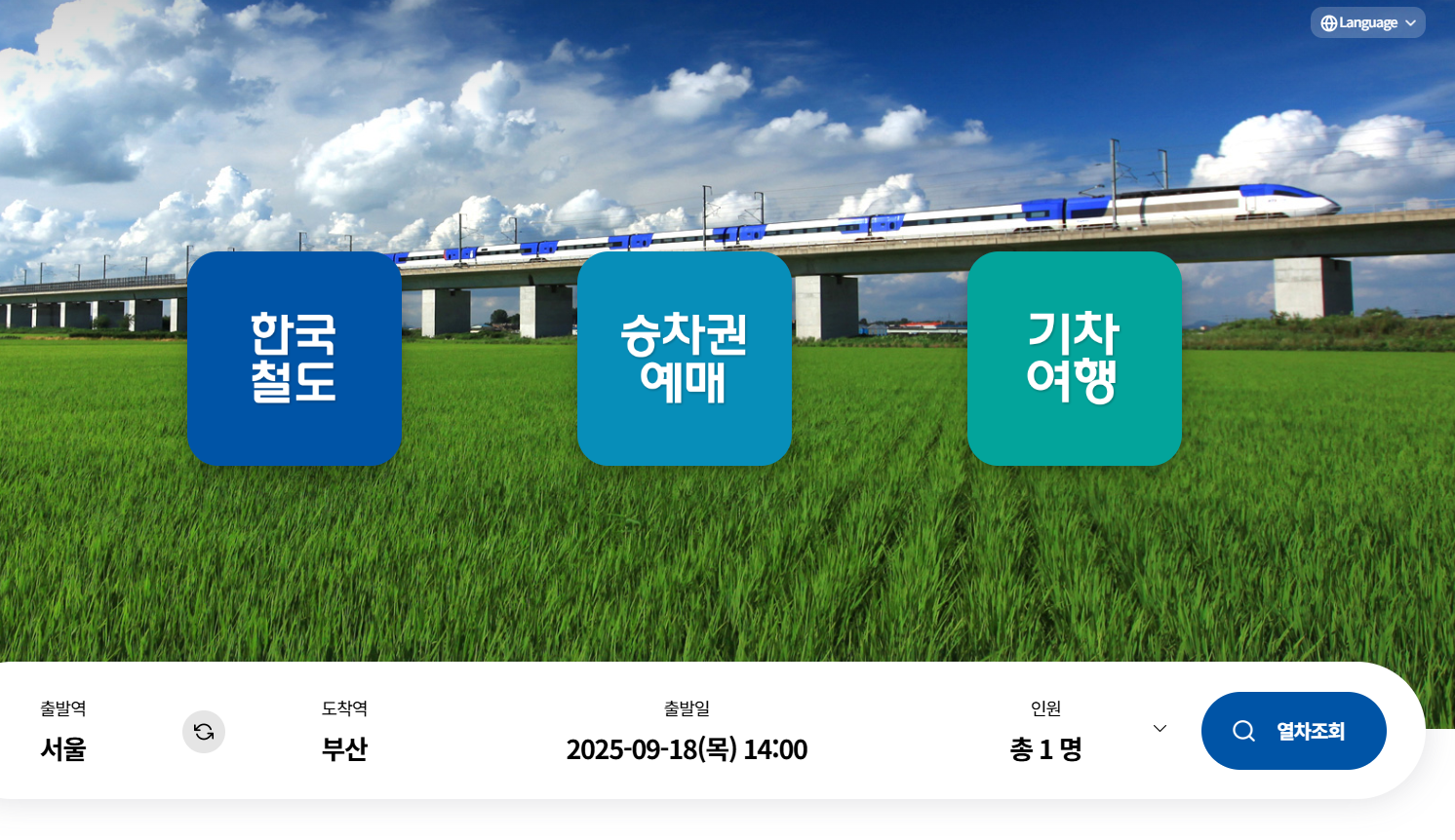 - 출발/도착역 선택: 원하는 노선을 선택하고 날짜 및 시간 입력