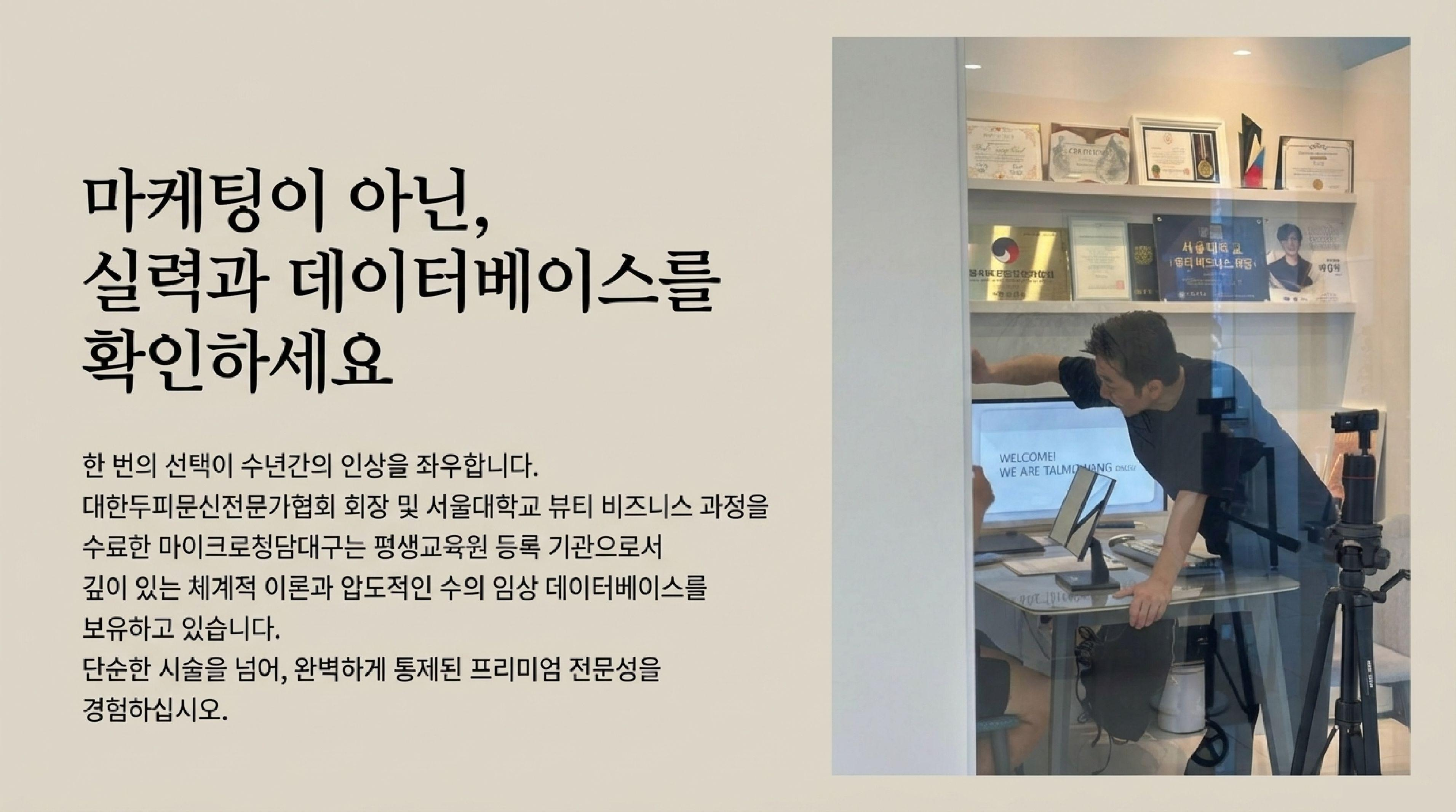 혼자 고민하며 스트레스받기보다는, 전문가와 함께 내 두피 컨디션에 맞는 1:1 플랜을 세워보시길 권해드립니다. 마이크로청담대구가 여러분의 든든한 파트너가 되어 드릴게요.