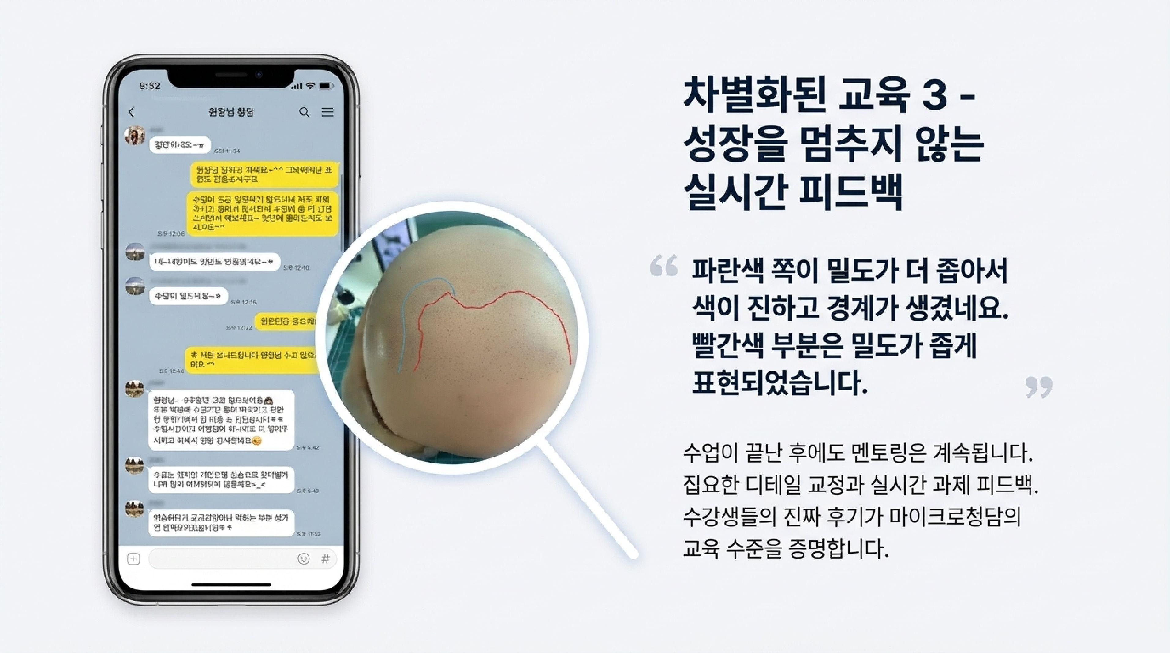 용품만 좋다고 결과가 잘 나오는 건 아닙니다. 고객의 두피 타입에 맞춰 어떤 니들과 색소를 조합할지 결정하는 '눈'이 필요하죠.